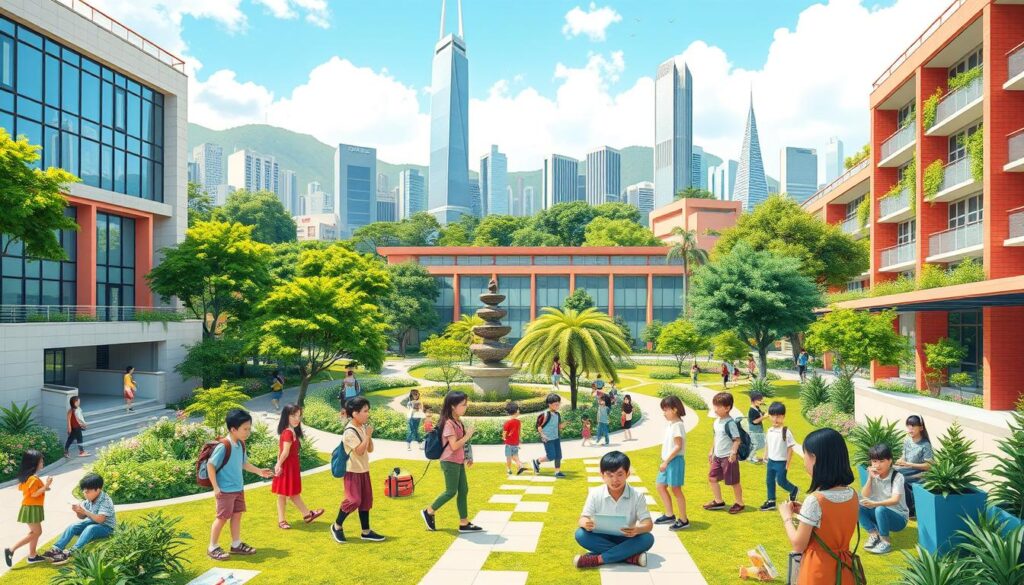 Despite these issues, Hong Kong’s schools keep getting better. They offer many curricula, like the International Baccalaureate (IB) and American systems. The city’s top-ranked primary schools and reputable secondary schools help students grow.